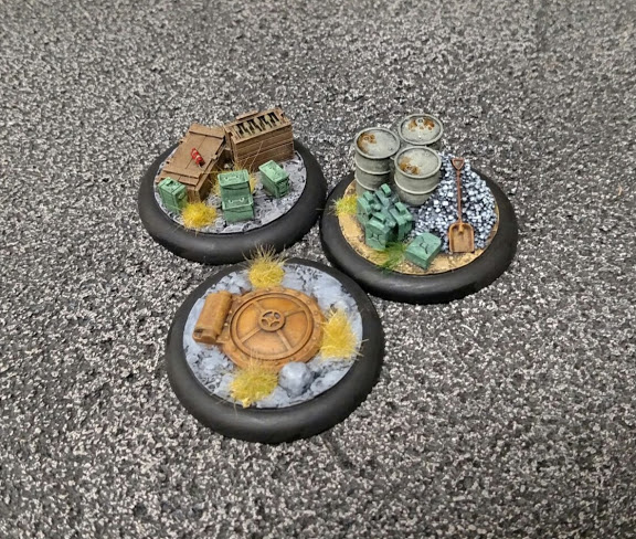 Along with the mutants, I also finished off a half dozen resin objective markers. Originally designed and sold for Dystopian Wars, the markers are like little mini-dioramas with all sorts of nifty details, perfect for sci-fi or post-apocalyptic games.