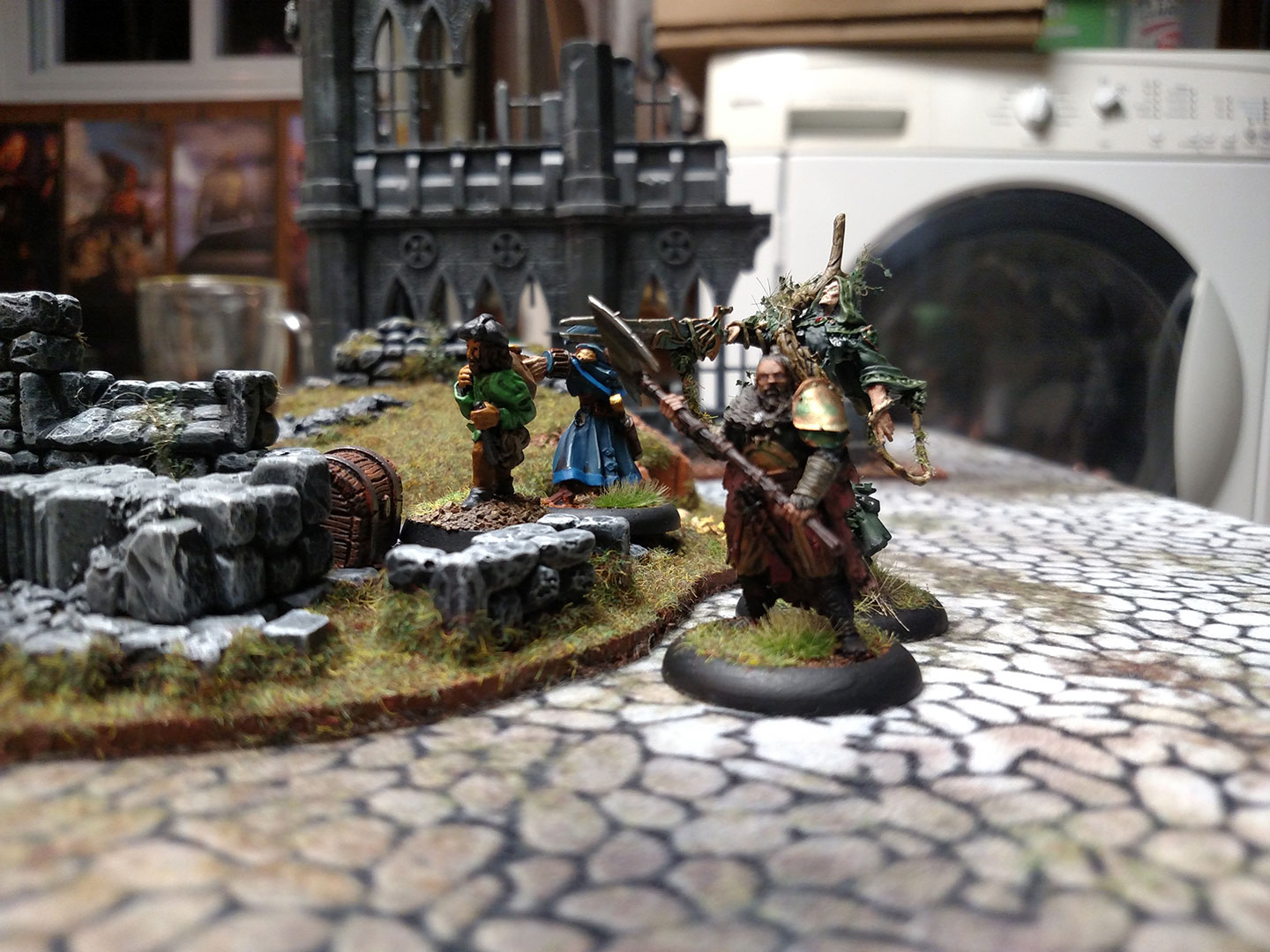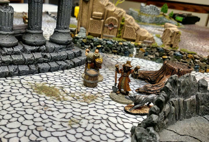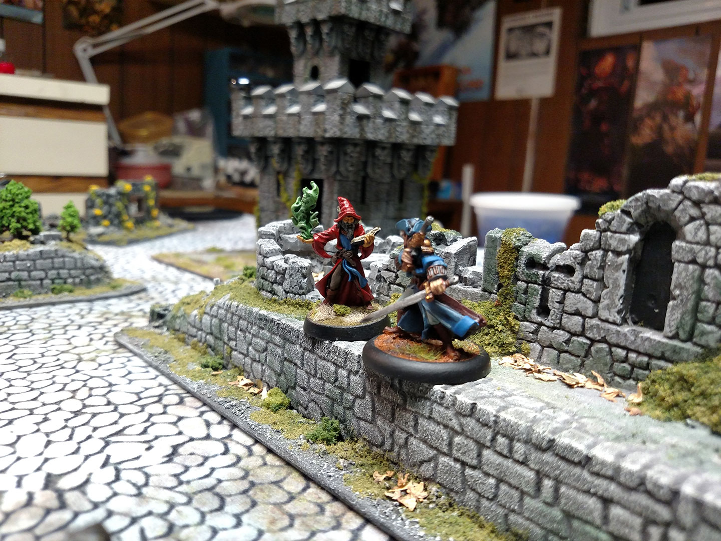 The game itself has a fairly narrow focus. It’s all about wizards leading bands of soldiers, mercenaries and treasure hunters into the ruins of a once-great city in search of priceless loot. The official flavor of the game envisions the city as snow-encrusted and crawling with all manner of frigid beasties, but I’m already committed to my own ruined fantasy terrain set, which is not snowy but works just fine in a pinch.