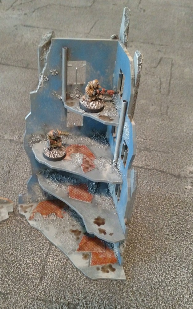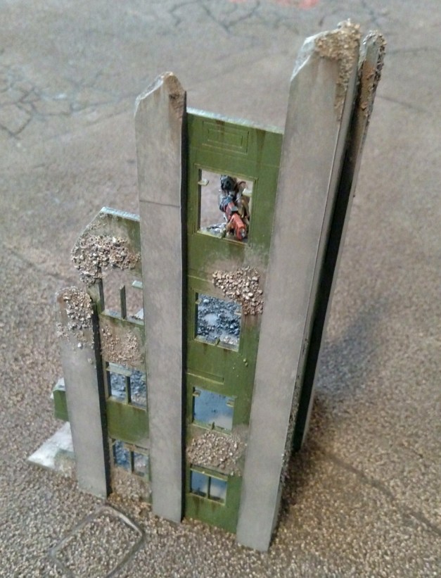 Overall I’m pleased with how these buildings turned out — particularly when you consider the price point of the kit! They’ve got a bit of “heft” now, which will help them fit into my existing collection of city ruins. I’ve still got a couple of these buildings yet to complete, and I’m planning on investing a bit more effort into adding little details and effects, such as fortified windows, wall panels, maybe even some stairs or ladders. Stay tuned!
