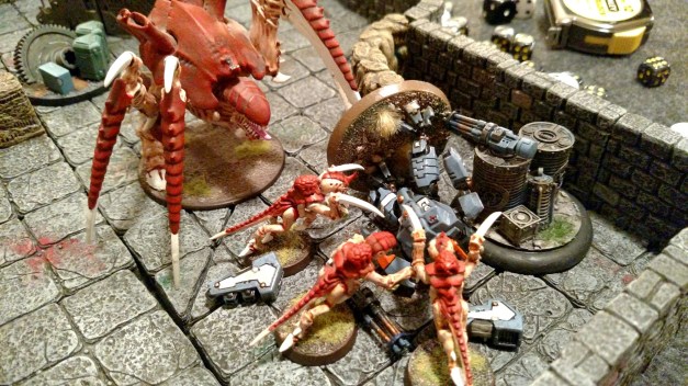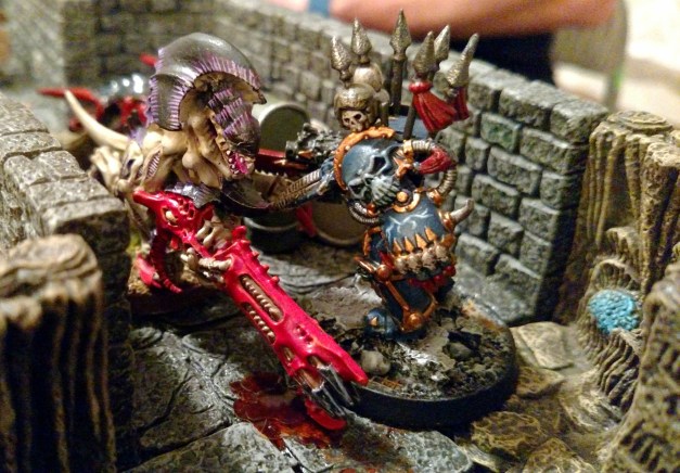 I had a chance to try out the latest iteration of Warhammer 40,000 this past weekend when Paul and I road-tripped up to Salem to grab a quick demo at Borderlands Games. Our host, Jason, did a great job — especially considering we dropped in without preamble and basically walked up to him and said “Hey man, can we get a demo?”