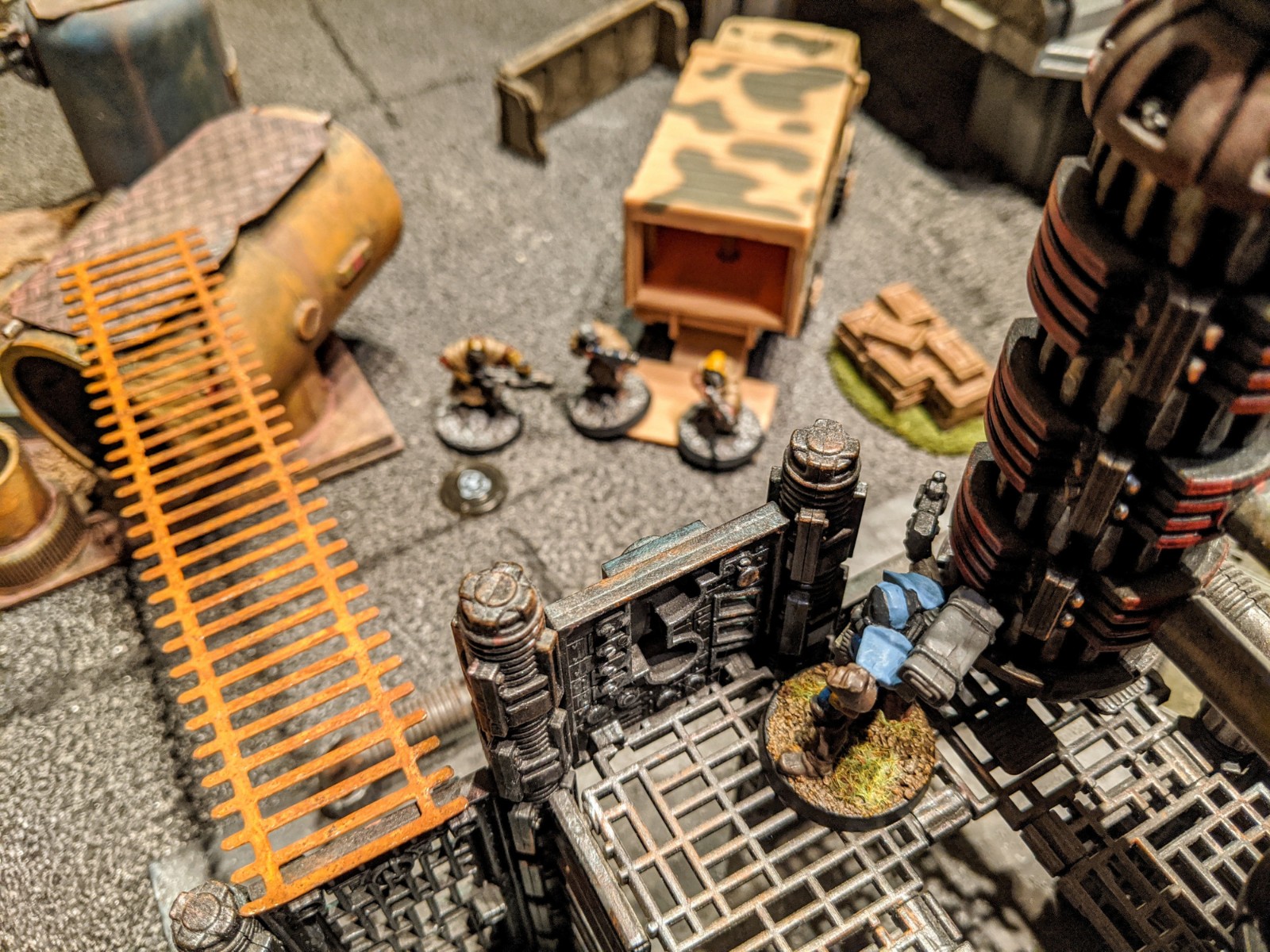 As the players began to strategize a way to neutralize the scavengers, Dan took it upon himself to deliver the coup de grace. His leader climbed onto the catwalk of the nearby electrochemical factory and tossed a grenade right into the midst of the bandits. Problem solved, comrade.