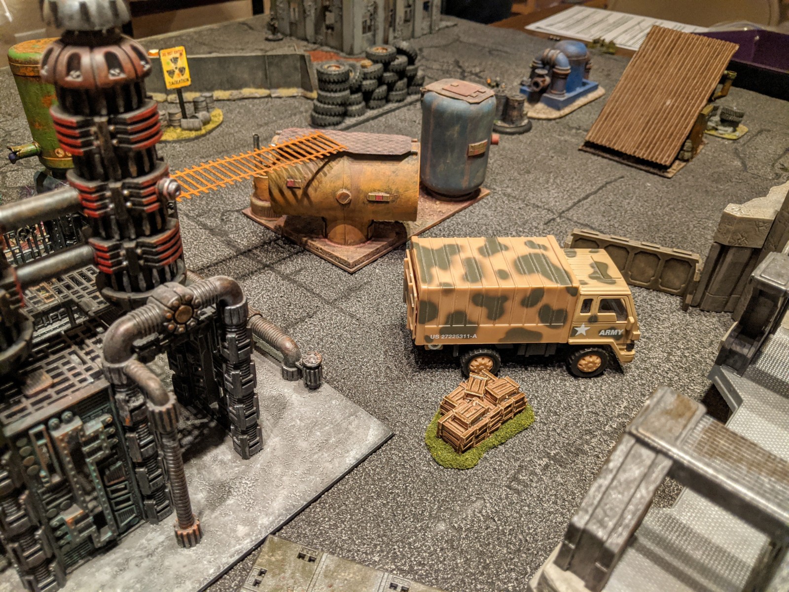 Narrative gaming is the heart and soul of Zona Alfa. For our games, we decided that the crews had heard a rumor of an abandoned supply truck parked in the shadow of the Khimbruk Electrochemical Combine, located about a mile inside the perimeter of the Zone. Surrounded by the decaying detritus of the derelict factory, the cargo truck promised a payday of salvage, loot, and more. Here’s a look at the objective.