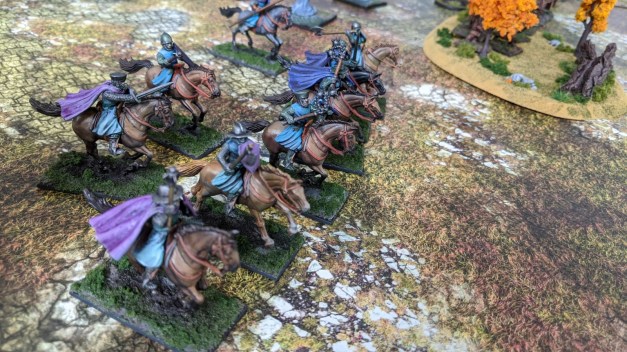 Likewise, this unit of levies shadowed the hearthguard on the opposing flank, always threatening to burst from cover and poke the cavalry with their spears. They actually jumped into combat toward the end of the game and, I think, inflicted some casualties!