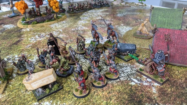 The quadrupedal creatures are Chaos Centigors from Warhammer Fantasy. I love the miniatures and figured I’d get them onto the battlefield alongside my Skaven. After all, why do we play Saga if not for opportunities to mix and match miniatures from our collections?