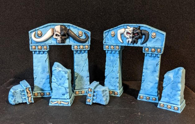 I also tackled some pieces from the GW Arcane Ruins kit, intending to use them as a Temple of Malice in our 40k campaign. I was particularly pleased with the ethereal blue paintjob on the stones, and the piebald skull faces on the glyphs.