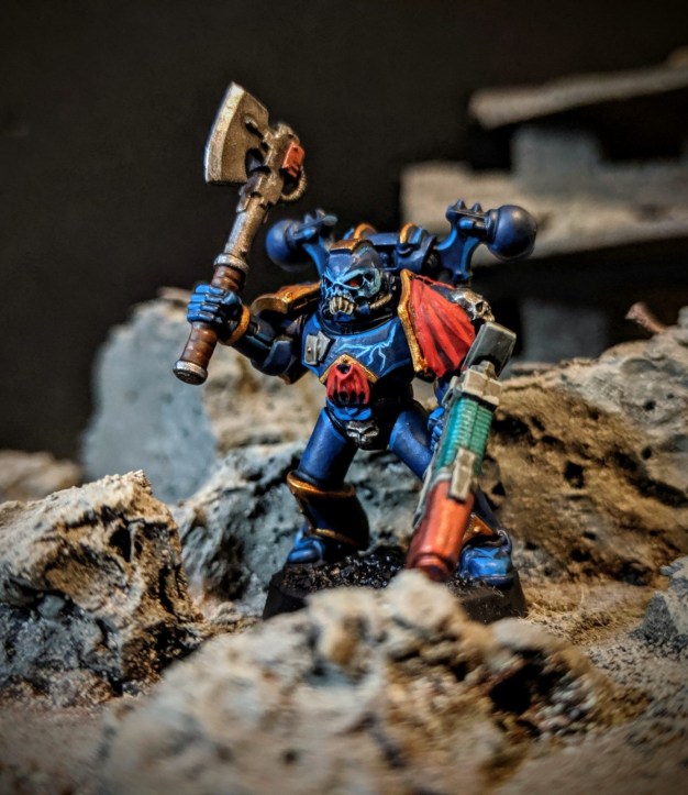 After that, Chaos fever gripped me! The new Shadowspear boxed set came out in early 2019 and my attention was once more pulled toward my Night Lords army. This army is always a work in progress and it’ll probably never be done. Haarken Worldclaimer was a nice new addition. Yeah, I painted him up as a Night Lord. Read more about him here.
