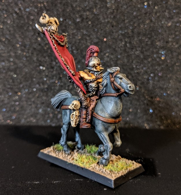 I needed a palette cleanser after all that blue, so I grabbed a lonely Chaos horseman from my bits pile and went to work on him. The end result was The Last Chaos Horseman, finishing off a 5-man unit that had lingered incomplete for nearly a decade.