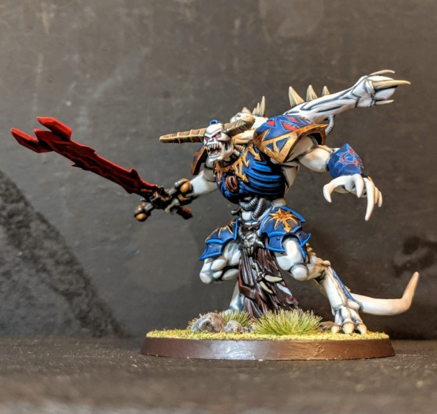 After that, I started working on a new centerpiece model for my Night Lords: a Chaos daemon prince! I had the brilliant idea to paint his skin a pale, icy blue … over a black undercoat! What was I thinking?! I think he turned out nice enough, though. Read more about him here.
