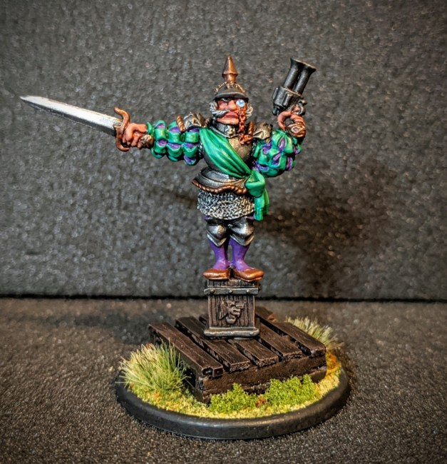 This guy is the old Empire Steam Tank commander figure, and I was so pleased to give him to John as a commander for his fantasy human empire army. I even matched his army’s color scheme (more or less).