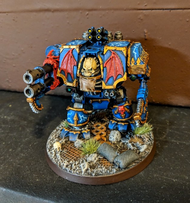 He was joined by my first-ever Forge World model: the Night Lords Ferrum Infernus Dreadnought! This is a classic model that I’ve always loved, and I was excited to get it for fairly cheap on ebay.